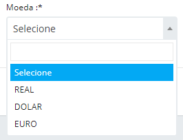 Para atualizar alguma cotação de moeda, basta clicar em “Pesquisar” e, em seguida, clique no “Lápis” correspondente a linha que contém a cotação de moeda a ser alterada.