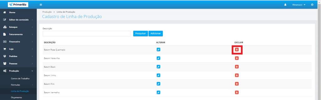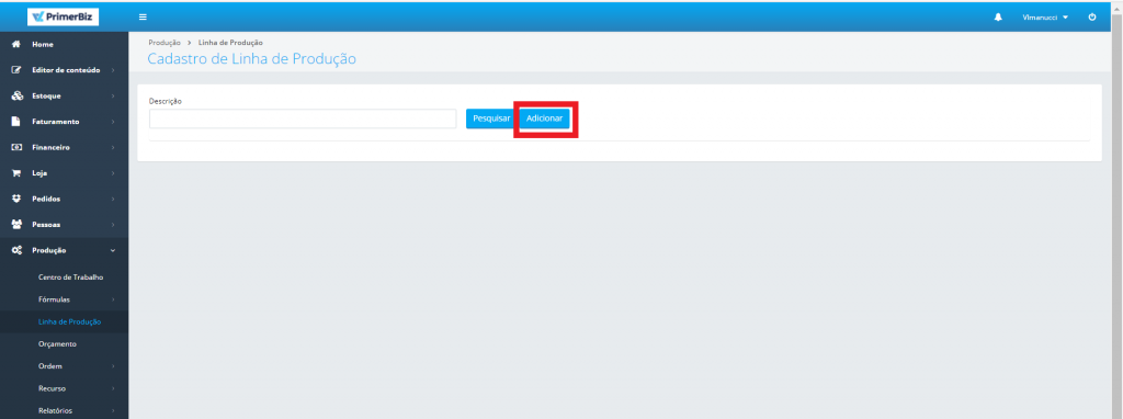 Para listar as linhas de produção cadastradas no sistema, clique em “Pesquisar”.